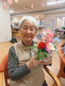 デイケア咲花も3月のイベント「フラワーアレンジメント」を実施し