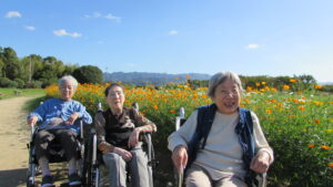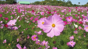 ピンクに黄など、たくさんのコスモスが咲いていて皆さま「綺麗やね~」と感動されてました。